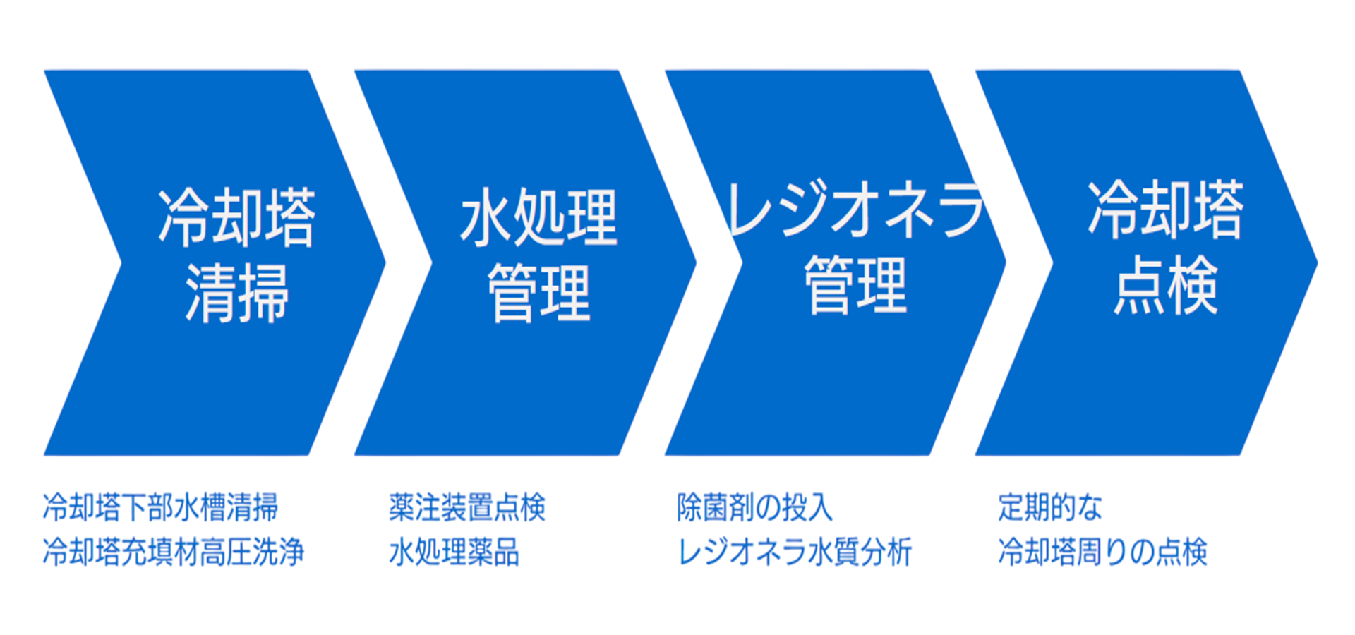 ETSクリア株式会社では、冷却塔に関わる各種業務を総合的に対応しております。